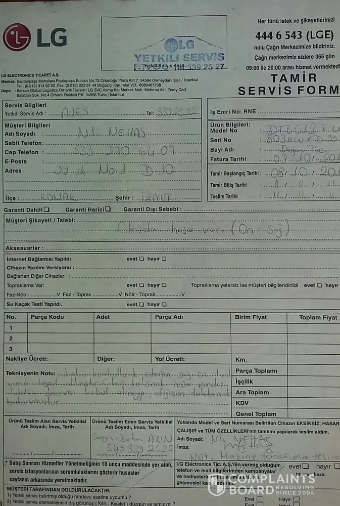 LG electronic company not replacing their faulty product I purchased washing machine on may 2017 I'm glad about it. I purchased an LG dishwasher from Doğan Dayanıklı Tük.Mal.San. ve Tic.Ltd.Şti. in Turkey on 03.10.2018. Technical Service came on 05.10.2018 and very quickly without giving a lot of information they went. And I am the owner of the dishwasher but they didn't wait for my control and signature. When they were at home I asked why they were putting machine so near to wall they said LG is smaller than the old one. I didn't believe and measured it but it was same & saw the right part of the LG dishwasher was damaged & I looked at the package of the dishwasher ıt was also damaged from the same part. I called both the service Ayes and the seller. Technical service came & agree that there is damage part on the machine right-hand side and also saw there is a damage to the package on the right-hand side. They said to wait for 2 or 3 days you are right and we will report this to the main office we will call you about the result. But they didn't call. I called them and learned the main office regret the form and send the reason to the seller. The seller said don't panic we will help you wait we will speak today, tomorrow, next week... I think they are waiting for 30 days. So they will not change. Both the seller and the technical service are playing like a ball with me. Please help me. This event and this faulty product are not suitable for LG Brand name.