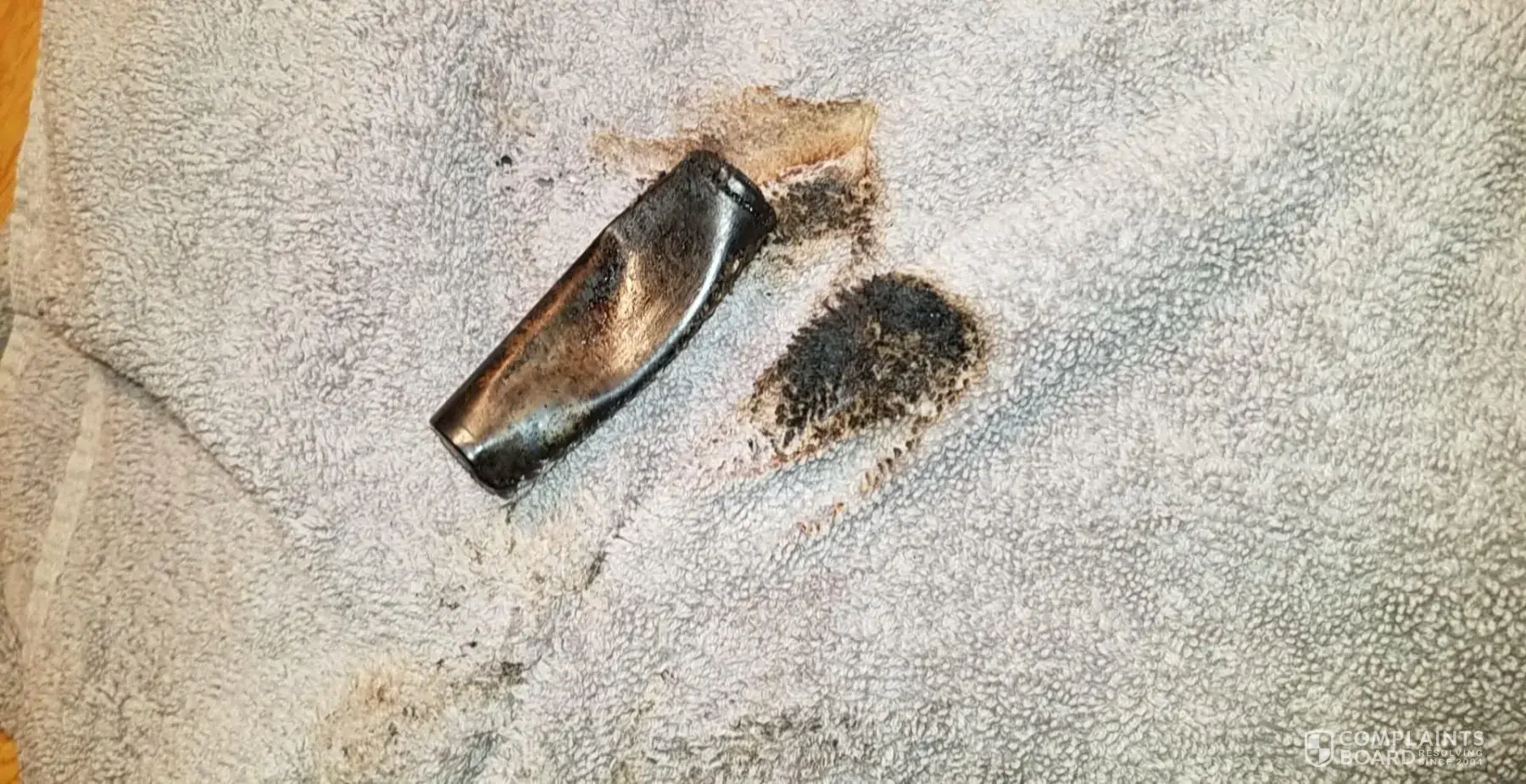 The other day. While my son was recharging his rechargeable battery for E-cigarette. It burst into flames, and caught my carpet on fire. This just happened about 2 days ago. I have pictures and video of the carpet and of the battery. I would like to be paid for damages for my carpet, and the wall and trim which was burned. My sons hands were mildly burned but did not get any medical treatment. My email address is [protected]@yahoo.com or my cell is [protected]. I thought I would take the time to ask you to make this whole.