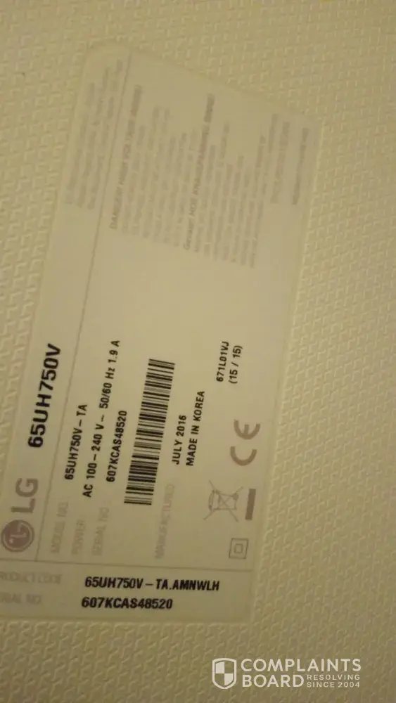My complaint is how do I buy a product from a big company like LG and can't maintain it for such a short time whereas other companies provide guarantee period of 6 to 8 years. The way the customer service dealy with me was worst service ever.
