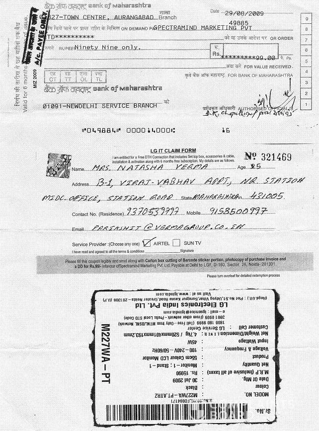 I completed all the formalities to get my DTH service according to the LG IT CLAIM FORM ( See A.jpg)