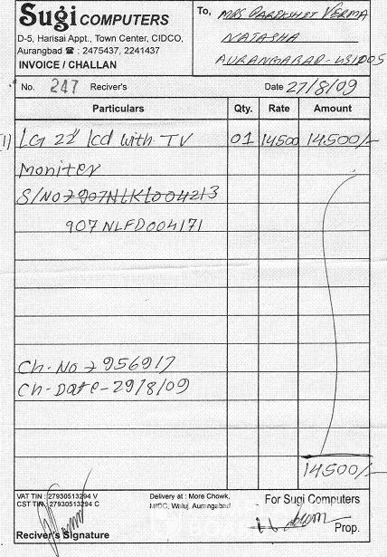 I bought LG 22" LCD TV monitor on 27/08/2009(Bill Attached B.jpg).