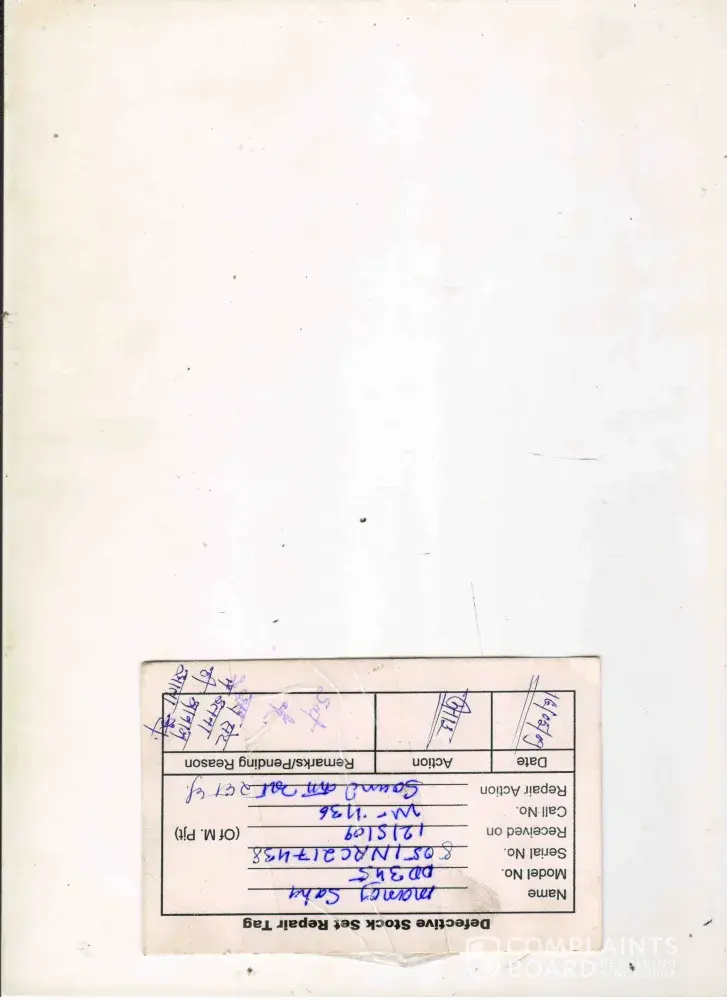 After few days sound problem occured, coplaint registered on-12/5/09.