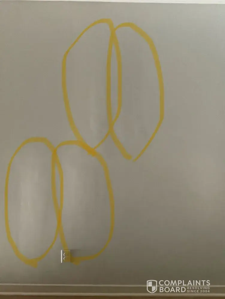 On August X XXXX. I received a an introductory to the home. *** demonstrated how the switches operate, the water/heater tank and the exterior operation. As I walked through with an associate, I informed him of several defects Upon completion I reflected what needed to be completed I As of today my cealing bears a different color of paint around light fixture and several other locations through out the home. The concrete in the garage is open wide enough to drop a quarter. The front where holes large enough to trip were filled with sand instead of sod like the remaining area. Light fixtures are not operating as they should (electrical). I was told by Darell and Wendy my concerns will be completed. In fact several appointments were made through darell for the painters to complete thr job. Additionally, my agent Heather was denied her right to be present, and I was denied the right to hire my designated inspector due to liberty requirments. Liberty practices are extremely questionable.