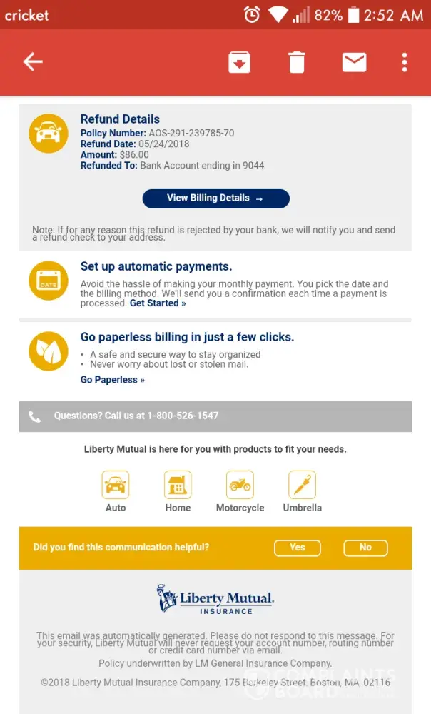 I was a previous customer of liberty mutual I recently cancelled because I found a cheaper quote and as a single mother every dollar & cent counts. Well the next following month rolled around after checking to see if my paycheck went through to my surprise liberty mutual took out $96.00.