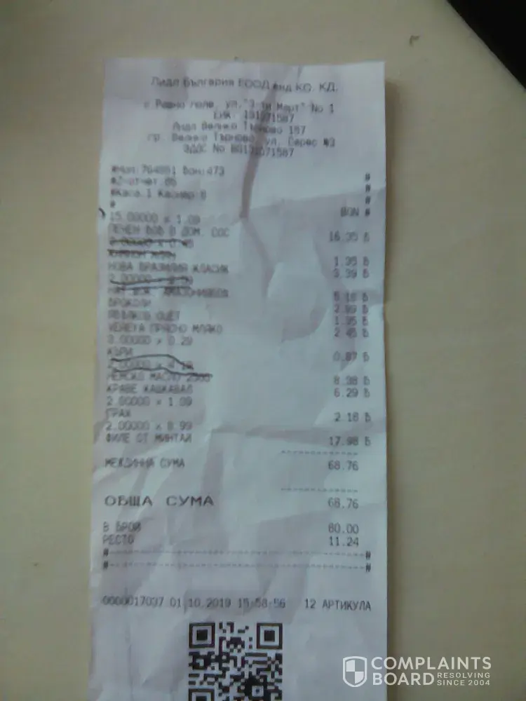 This was sent to hotline@lidl.bg - Along with my reciept.