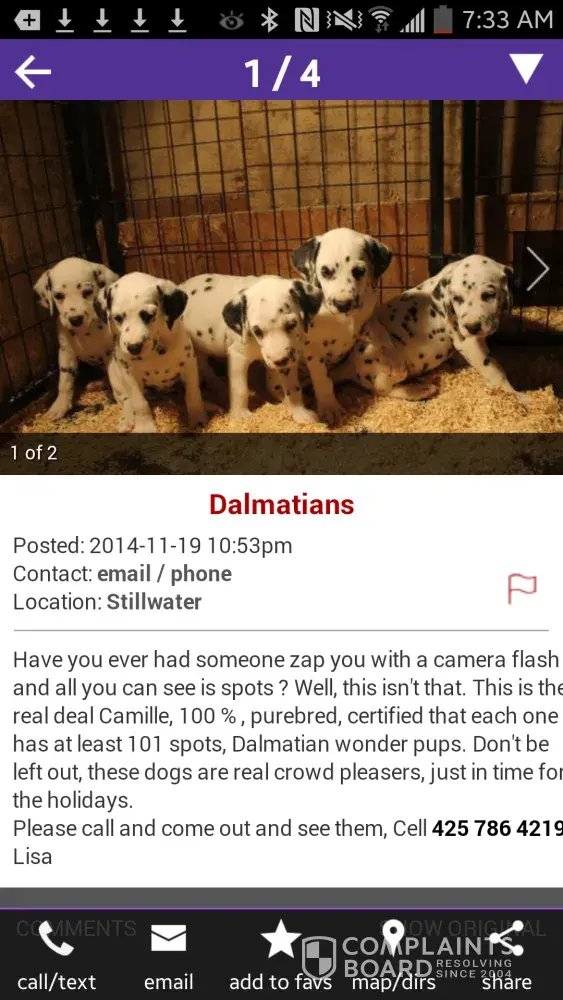 I just saw her ad on craigslist. What I found fishy was her description of Australian Shepherds: