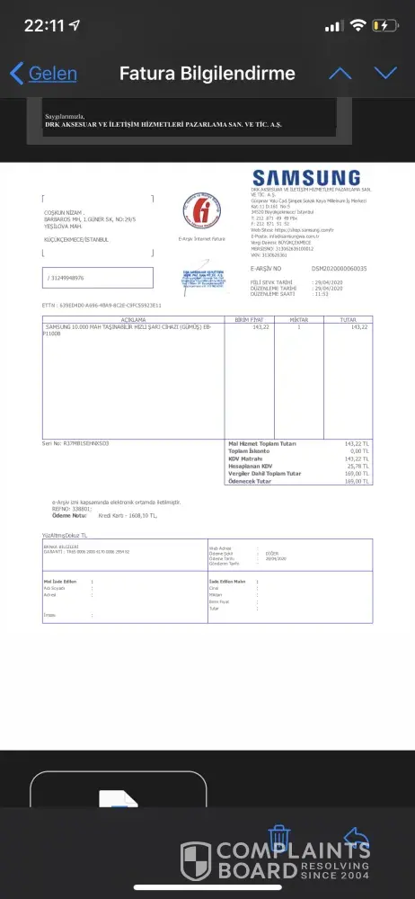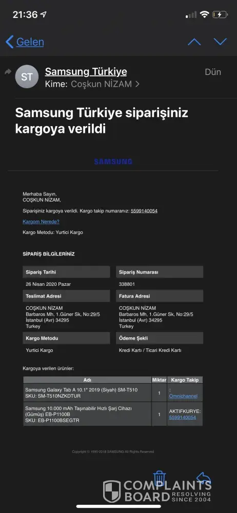 My order transaction was closed as completed although my product was not delivered by samsung turkey