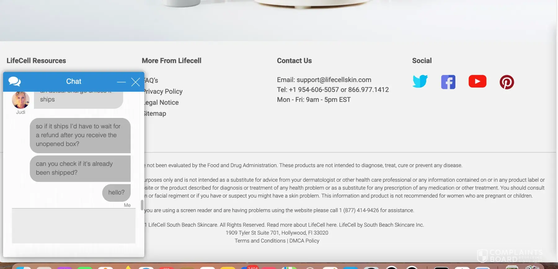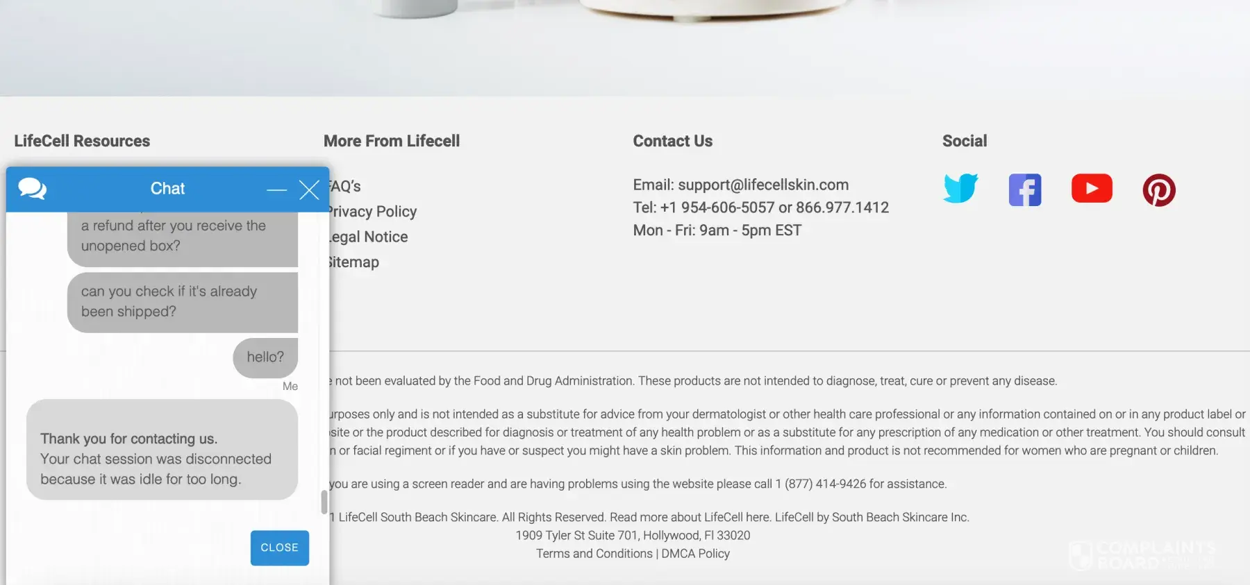 We found clear and detailed contact information for LifeCell South Beach Skin Care. The company provides a physical address, 3 phone numbers, and 2 emails, as well as 4 social media accounts. This demonstrates a commitment to customer service and transparency, which is a positive sign for building trust with customers.