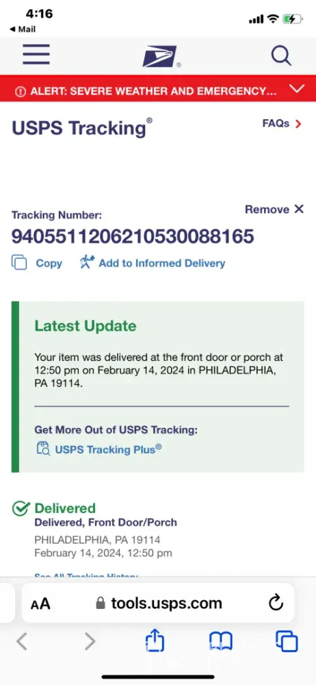 The PO said it was delivered but since I did not get a receipt just sent it as return to sender. I could not do anything.