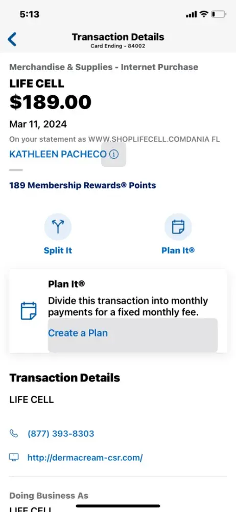 The next notice concerning Life Cell company came via my bank statement that this was not the first shipment I had been charged for. But I had not received anything else from them, other than the free 30 day sample. I was charged $189 for the so called free sample that I also paid shipping on.