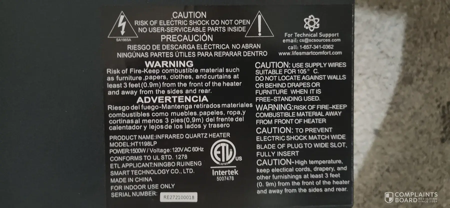 Purchased heater in Jan 2018.Heater shut down a few times .Restarted but fan made humming noise.Unit began to smell and became overheated causing power strip to trip.Living room stunk for hours of nasty odor.Web sight does not exist for complaints.Will return item to Home Depot and inform management that Lifesmart has been under many complaints since 2013 and future business with them should be terminated.Will update how management handles this issue.