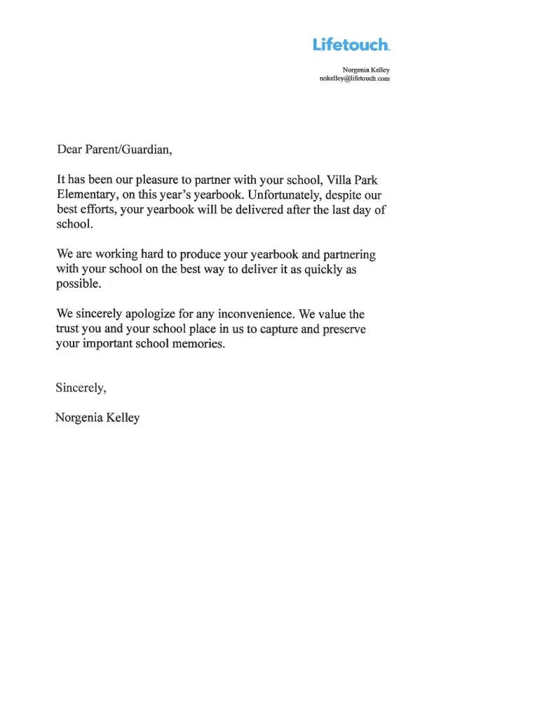 We received an e-mail from our principal, the eve of the last day of school, explaining that Lifetouch wasn't able to complete/deliver yearbooks before the last day of school. Although a generic apology letter was attached, there was no offer to compensate for their poor planning (like free shipping or discount on next year's photos) or consideration for the affect this would have on students, especially those not returning next school year. Very disappointing.