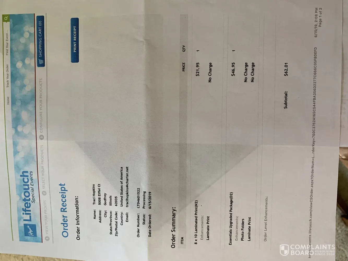 2nd year in a row, we preordered and paid for school photos via LifeTouch. 2nd year in a row they somehow 'lost' our order and will have to reprocess them and mail them out in 3-4 weeks! They have no email address on the website to reach customer service, the Chat function was not available anytime I tried, I called and waited on hold for OVER AN HOUR. Each time I tried the option that would hold my place in line and allow a representative to call me when my turn came up, it kicked me back onto hold and back to the end of the line! I literally had NO options but to sit on hold for an HOUR. When my call was finally answered, I could barely understand the woman's broken english. She kept repeating herself and reading scrips that in no way pertained to my issue. She couldn't find my order despite my reciting half a dozen different identifiers to her, I have no way of knowing if our photos are actually being processed or if we'll ever receive them. Beyond frustrating, I will NEVER order anything from this company ever again.