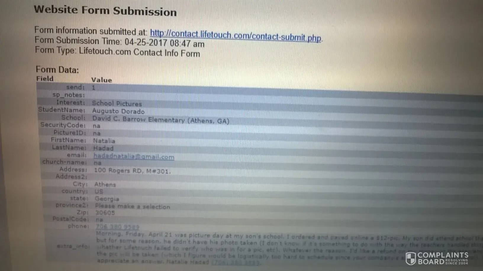 school photo charged/ refund unfulfilled following pic not being taken