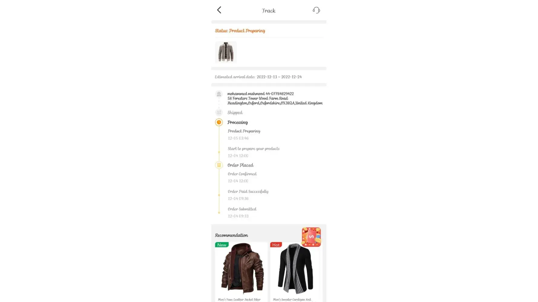 Desired outcome: The order delivered by 21/12/22 or a complete refund of the full amount