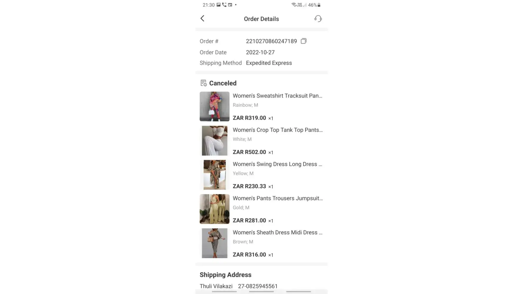 I ORDERED clothes from Light in The Box, I paid R3884,99 along with all the SHIPPING FEE , my order got timeout I DON'T KNOW WHY OR HOW . My MONEY WAS NOT REFUND AT ALL.