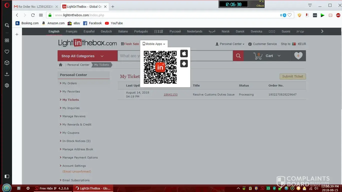 I`ve asked why this should be & they`re still processing what should be a simple logic that either their software or staff are crap! When you login through Facebook there`s no record of any orders with this company & the only way to contact them is through My Orders which this above order is currently not listed. This must take the award for craziest & worst service to-date I`m trying to explain to customs who are not the nicest of people that the people Emailing me about my order can`t even put the purchased item in my A/c! Light In The Box for your Non Service YOU ARE TOTAL CRAP!