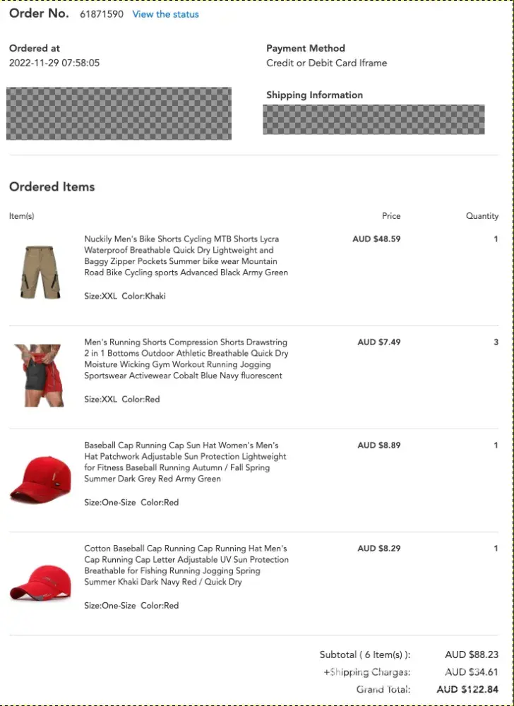 Ordered two of the men fleece sweatpants joggers 01-05-2023, the cost $7.99 a piece. A white pair 1x and yellow pair1x. Ordered seven more of the same men fleece joggers the next day01-06-2023. Well I got confirmation on the ones I ordered 01-06-2023 and shipping info, but not for the two I ordered 01-05-2023. They also over charged my credit card…the price for the two men fleece sweatpants joggers $7.99 plus taxes and shipping fee. Well the math on the taxes for shipping fee is not $50.83 for two pants