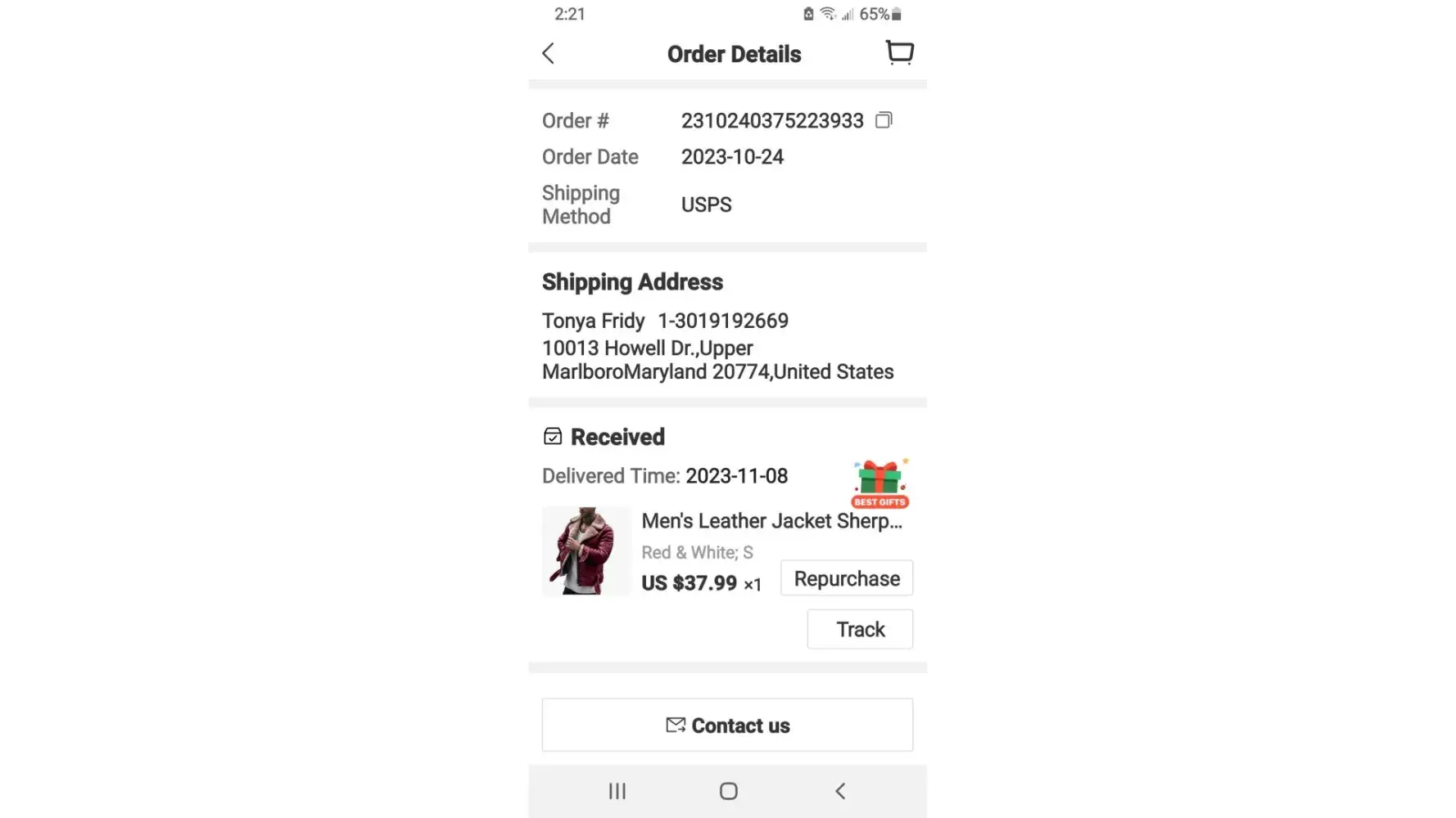 I purchased a Men's leather jacket as described on their website and received a cotton handmade jacket that is not made of leather. I feel it was a scam from the seller and Light in the box should make the seller provide the return shipping label and all my money should be refunded $48.34.