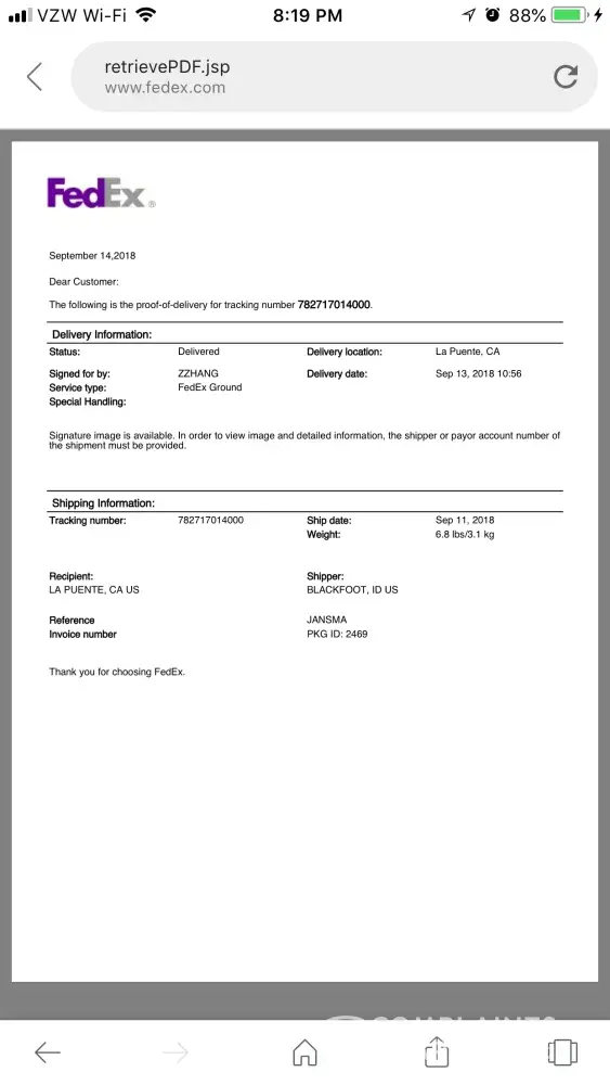My order placed Aug 19th 2018 Invoice # L1808200336443327 for a total of $127.22 not received.