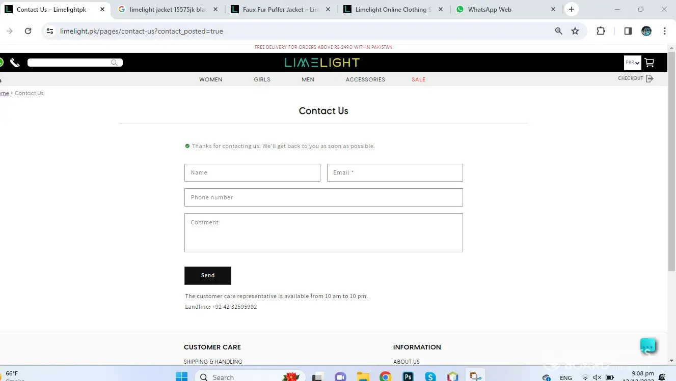 I am extremely disappointed with LimeLight PK. I placed an order two months ago and unfortunately, my order got lost. I have been trying to reach out to them through WhatsApp and their webpage, but nobody is responding. It's frustrating to see such a big brand not having proper customer service to follow up on lost items. I wish I could give them a zero review. I will never order from LimeLight PK again.