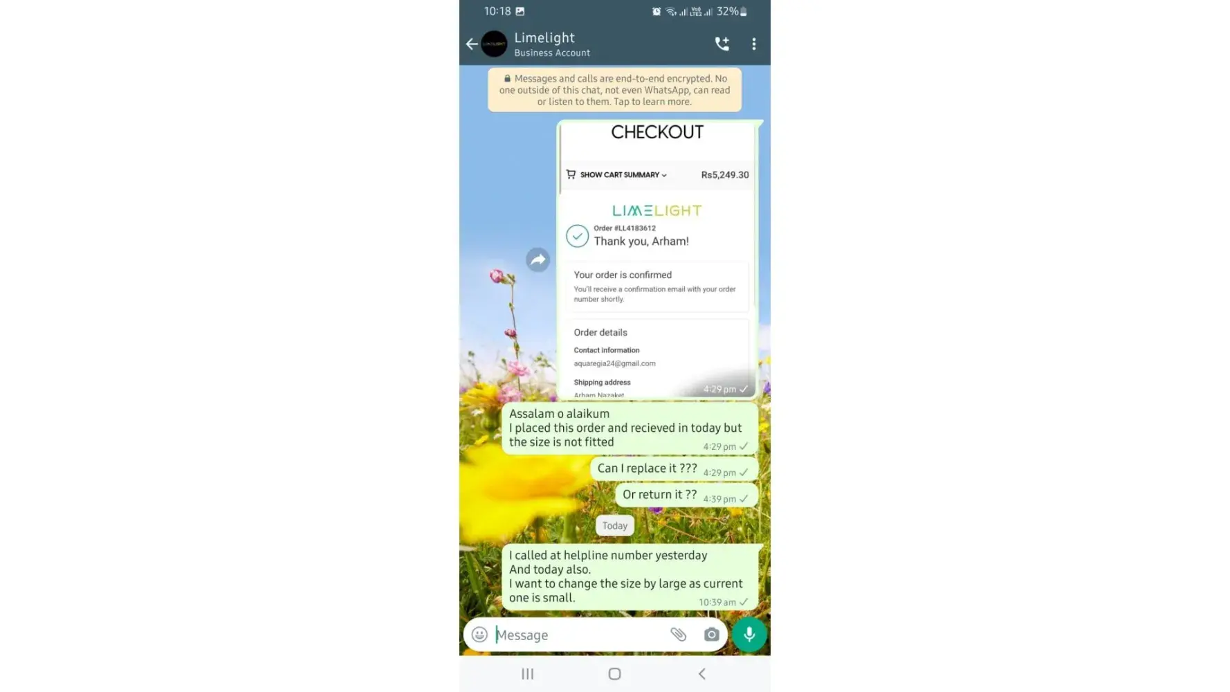 But it doesn't fit in as I order small size. I paid 5249/- rupees for the product. Afer recieving the order, I instantly call at Helpline on 042-[protected] and talk to Ayesha Javed their customer representative. She asked me to visit the outlet to change the size. It visit the outlet on 11-12-2023 at around 6:00PM.
