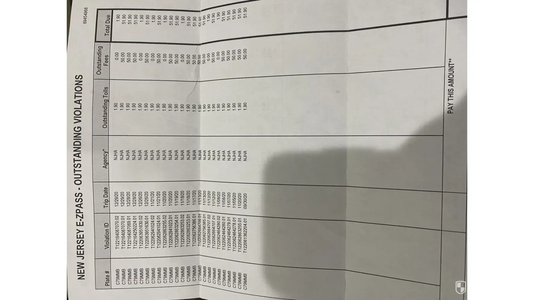This company is attempting to collect a large number of toll violations from 9/30/20 through 12/29/20, totaling 895.60.