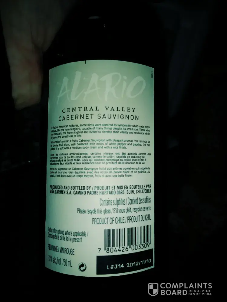 Read full complaint and 1 commentalario central valley, cab. sauv. wine 2018 chile