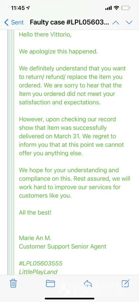 Our conclusion: ComplaintsBoard has concerns about Little Playland's legitimacy, so we recommend caution. Be sure to check complaints and reviews to understand Little Playland's practices before engaging with them. If you've had a negative experience, please let ComplaintsBoard know by filing a complaint.