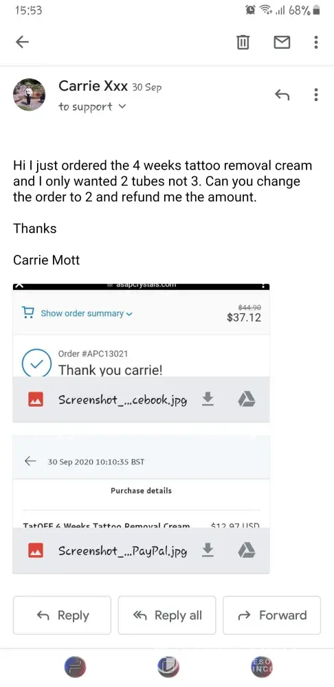 I bought some tattoo removal cream off them back in sept 2020 and the website added 3 tubes instead of 1. So it charged we $37.12, which was £29.99 to me. I tried to contact them straight away to cancel the order. I went on their website and emailed them. No response from the email and the website said you could cancel and that you had to wait for the order to be delivered before you could arrange a return.