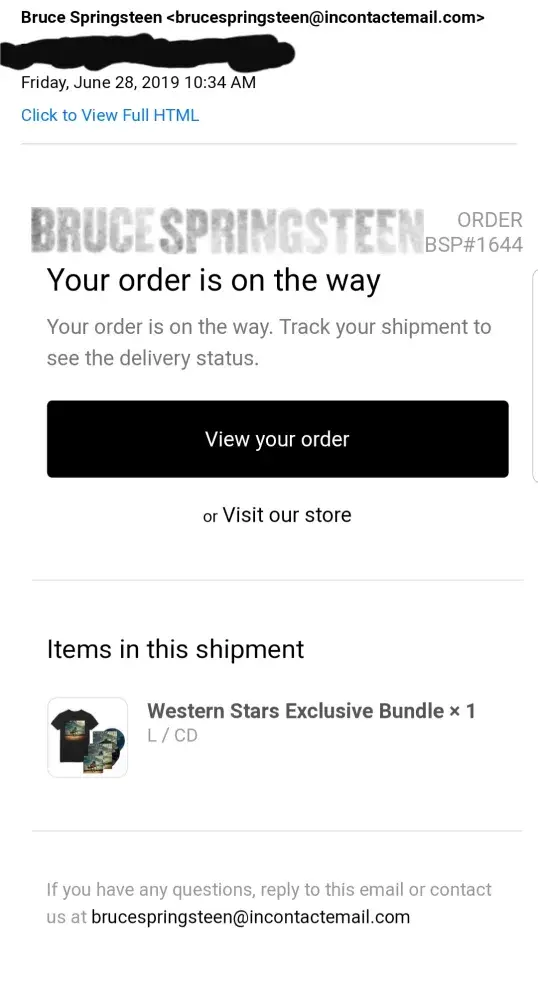 I preordered the new Bruce Springsteen Western Stars CD Bundle on 4/26/19 off of his Official Website and was expecting to receive my stuff ON TIME on the official release day. The last email I got said Id get an email saying I would be informed when my shipment would be on its way but NEVER got it and the new CD came out officially LAST FLIPPING WEEK ON THE 14TH & I instead got an email saying my order was delayed til THIS WEEK then it NEVER CAME. This Is ridiculous! I have ordered off the official Website Store previously and had NO PROBLEM with receiving an email saying my shipment was on its way nor any problems with not receiving my order ON TIME. I WANT MY PREORDERED WESTERN STARS ORDER NOW! I paid alot of money for that bundle and am extremely angry and disappointed I DID NOT receive it when I expected it 😡😡😡😡😡
