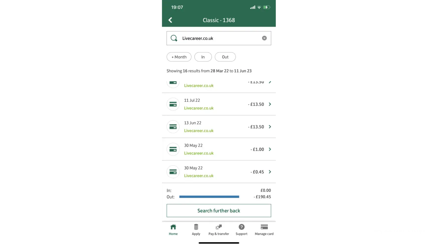Therefore, I request a fully refund since May 2022. The total amount deducted is 189 pounds, and payment proofs from my bank and Livecareer website are attached.