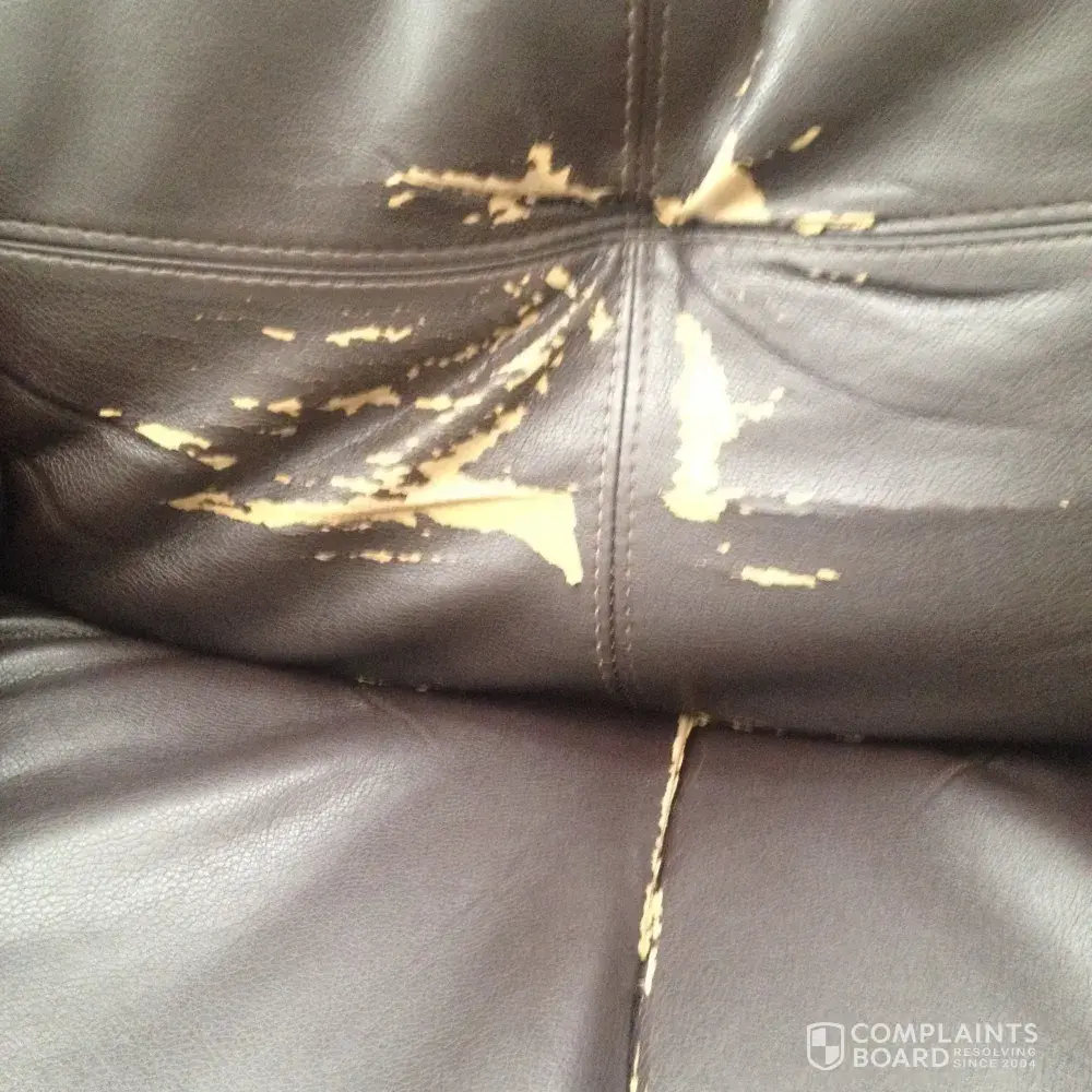 Product was in living room and not used for 2 years (Only used six months since}. The bonded leather is peeling off the back cushions. Purchased in january 2013. It gets worse every day.