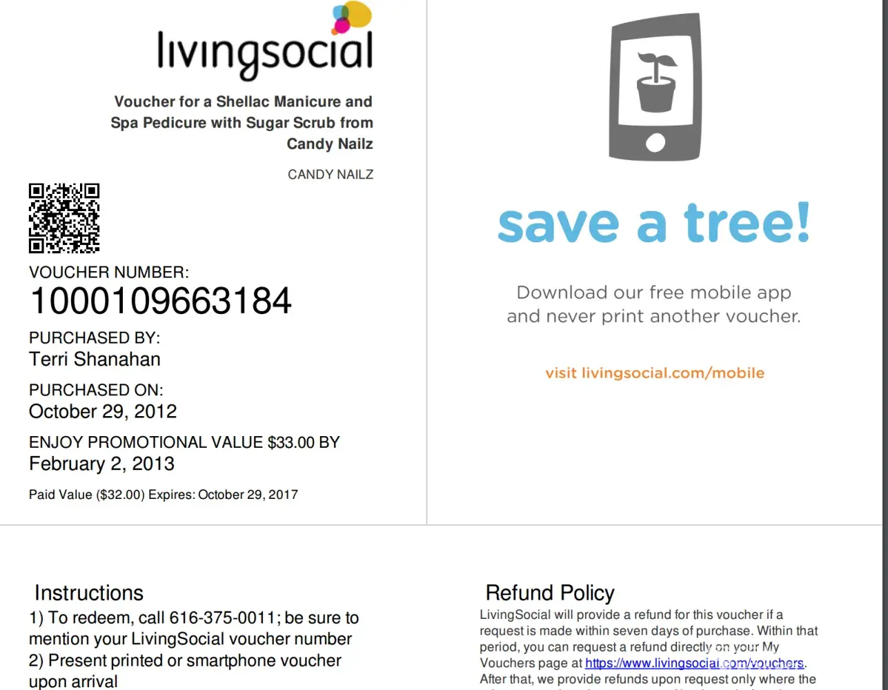 In April of 2012 my wife bought 4 vouchers for a total of $580.00. She booked with the provider 5 times and each time the provider cancelled the flight. They then went out of business. Livingsocial refuses to refund us and is completely inept at handling the problem. This is a joke of a company. It is now 2017 and we still can't get a resolution. They are great until you need their help. Then they disappear. Please spread the word about Livingsocial to everyone you know. BUYER BEWARE!