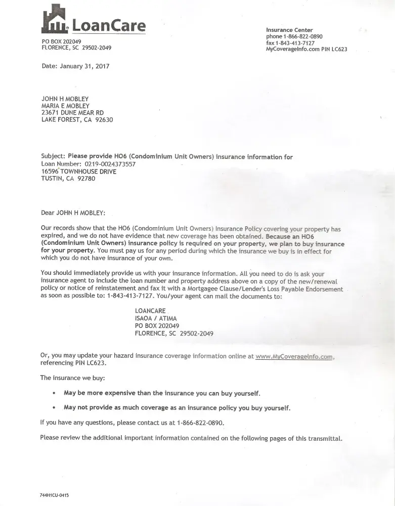 Now Loancare charged me $406 for lapse in coverage when I had coverage (the same coverage from the year before).
