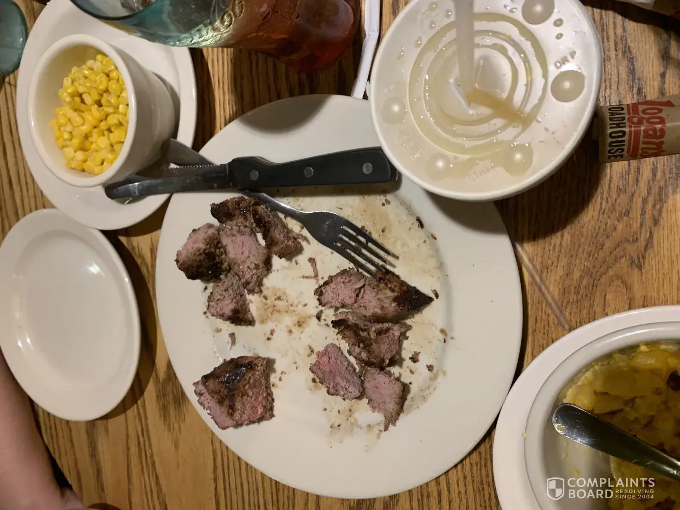 I Ordered the filet and shrimp. The shrimp was so over cooked it was petrified. Showed waitress, she agreed and promptly replaced it. Sadly, they were petrified too. My filet was not a real filet. No really. It was the same kind our butcher sells that is glued together pieces, only the butcher tells you that they are glued together pieces! ( I showed my husband and said "do you see anything strange about this steak?" He took about 10 seconds and said "ya, that's one of those faux filets we get at home for cheap"). Yep. And when was the last time you guys sent secret shoppers in to actually TASTE the food? It literally had no seasoning on it whatsoever. None. My corn on the cob had so much silk left on it, it wasn't worth the hassle to eat knowing I would be picking it out of my teeth all night. Waitress was sweet, manager was nice, but who cares! I wanted a decent meal. Somebody there is walking out the back door with your real filets and your cooks can't cook prep or season food. I am beyond dissatisfied. Oh and I tried taking your Logan's listens survey. It conveniently won't load. Serial #2307190503661320. No validation code ( was that on purpose?) check #661320 6:14 pm. My husband ordered the ribeye. He had to salt the snot out of it. No seasoning either. We never send things back or complain because we just aren't that way but I feel ripped off! We are over the road truck drivers and very rarely get the opportunity to go out to eat due to no parking for a giant truck. We parked at Cabellas and walked almost a mile to get to your restaurant. ( you obviously have no semi truck parking) we were so excited. Now I'm just plain upset. I was literally in tears. And this was after driving 10 hours today. We put in the effort, what a waste of time and money!