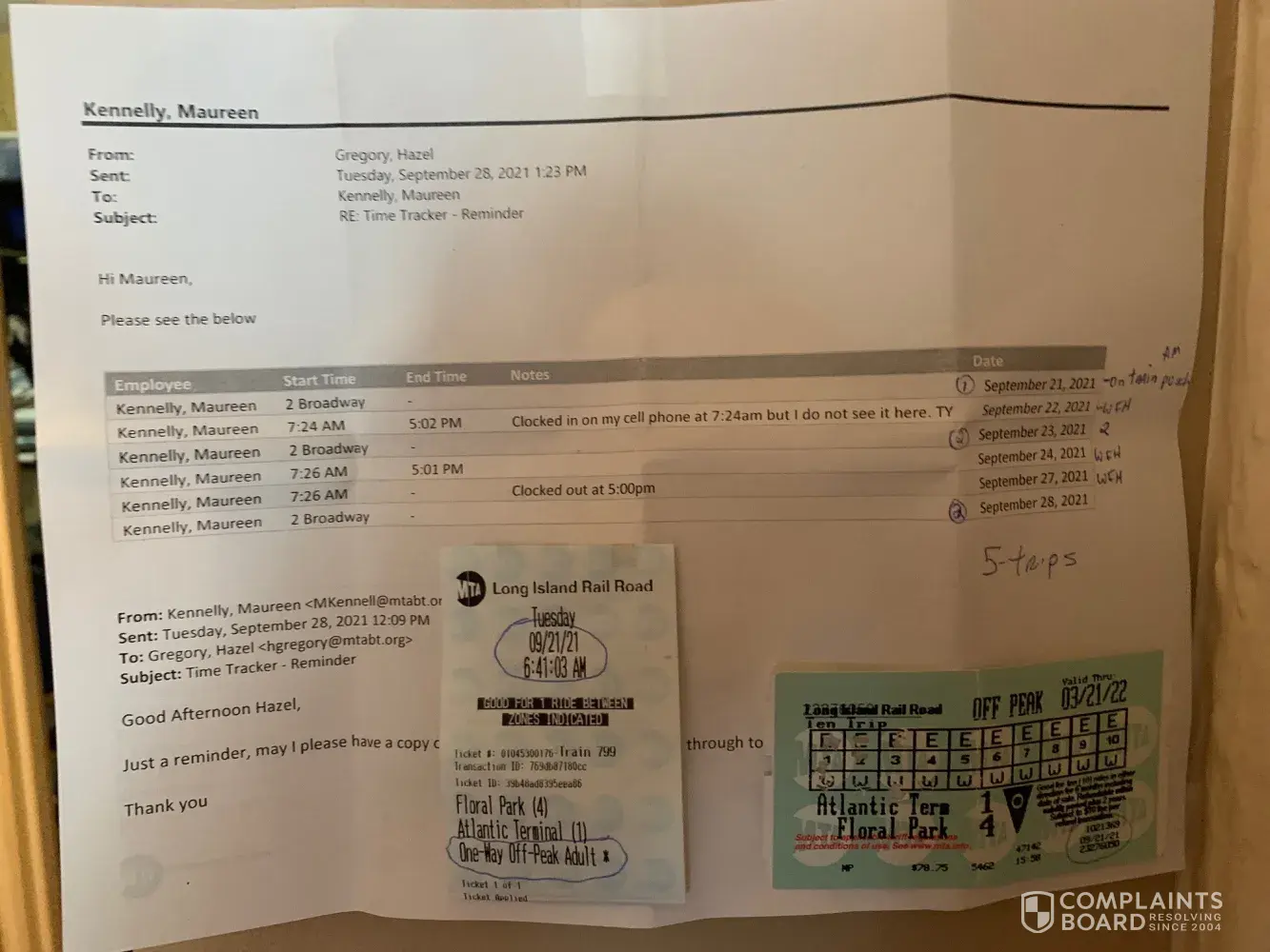 I work for the MTA B&T, I recently started to return to 2 Broadway office on a 2-3 day basis. On Thursday morning, I purchased a morning ticket on the train and then in the afternoon, on my way home to Floral Park, I purchased a 10 trip off peak ticket at Atlantic Avenue on 9/21/2021 at 4:58pm. As of today, I am home from home 9/29/2021, I've only used the 10 trip ticket 5 times, yes on the ticket it appears I used it 6 times. I believe the conductor seemed to double punch my ticket on 09/21/2021, not knowing I purchased a morning. I have all of my receipts as well as a log of how many times I have been in the office. Please advise. Please feel free to email me at [protected]@mtabt.org or my cell # 516.697.8424. Thank you