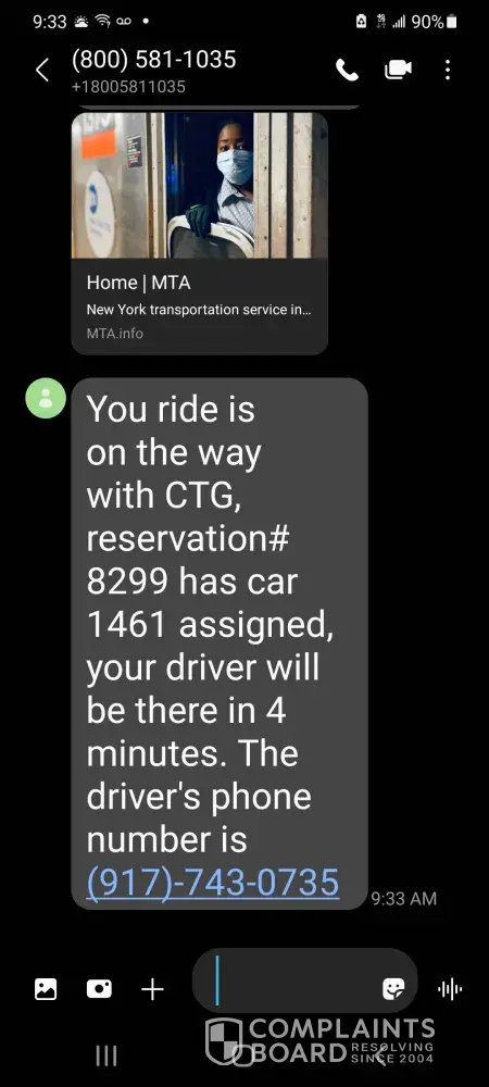 While there are problems with all access a ride brokers / drivers, none are as consistent as CTG, the fact that they can not be found online and treat AAR customers with such disregard leads me to believe that they are less of a cab company and more scam artists that have somehow managed to get a contract with the MTA / Acccess A Ride. We need to put an end to this contract, deal or whatever because I promise you this is a major problem for people who are just trying to live their lives without trying to do mental gymnastics to figure out if their ride will come or if they have to figure in traffic plus their hour wait time for CTG before scheduling their day.