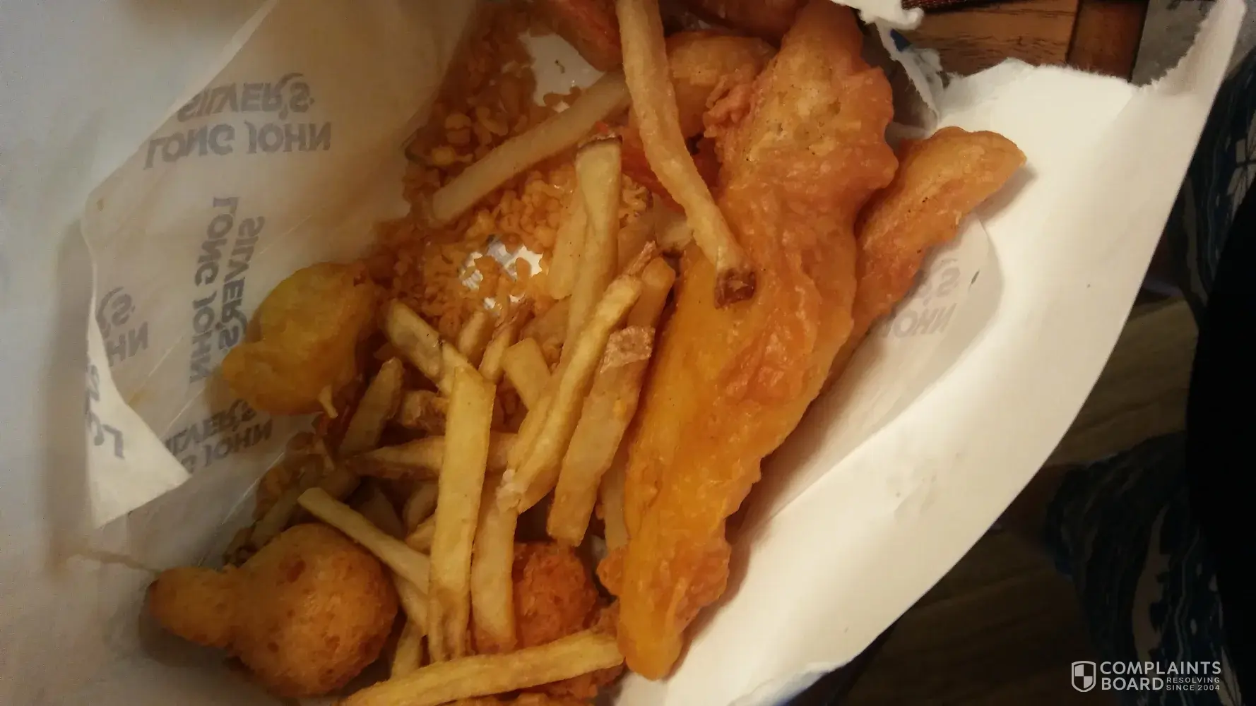 Well if you did tell them about the fish did they make your new one that's why I would had they do cuz sometimes when they're cooking the grease they don't look at everything when they bring it up cuz they think it's automatic cooked fully it's not so I tell people anytime customers get any kind of food check it before you eat it this way if it's not right you shouldn't have to do that nowadays it's different back in the 60s and 70s and 80s when I worked at Wendy's for 25 years for 20 years customers are first at all times nowadays customers are lost sometimes waiting Floyds think now to me has a manager customers right to certain point customer is not right all of the time.