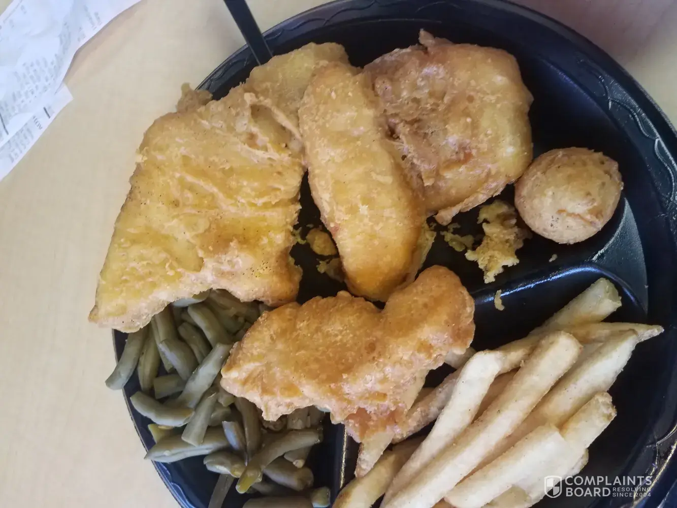 I walk into the Parker Colorado location on 2/25/2018 about 1:30 PM. There were only 4 customers sitting in the restaurant. I order the fish & chips They had at least 4 people working in the back. It took about 15 minutes for my order. That was not the problem and the front cashier was nice. When I took my to go order to the car it had a funny burnt grease smell. I ate one hush puppy. Tried to eat the hard cold fries, had a bite of fish. All tasted like 30 day old grease and hard as a rock.