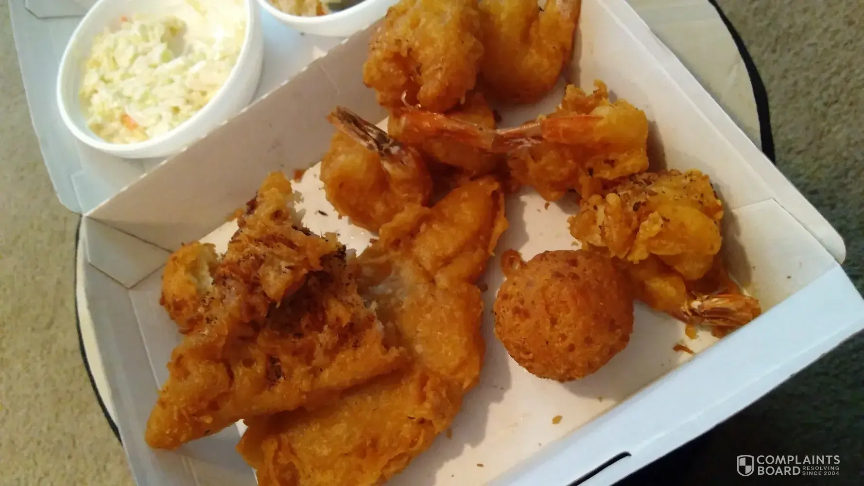 I ordered fish and shrimp to go. I've never had an issue with LJS before so I never really look in the bag to check it first. But I should have this day. My shrimp were super dark and overly crunchy and the inside was chewy. I don't know if it was over cooked or bad breading. I moved on to the fish and it was about as dark as the shrimp except I know this wasn't burnt, the inside was freaking froze. The only thing I was able to put in my mouth was the soda. As mad as I was I even put a shot in it hoping to at least enjoy something that I purchased.