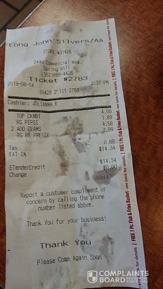 Read full complaintservice, and cold food and water down soda