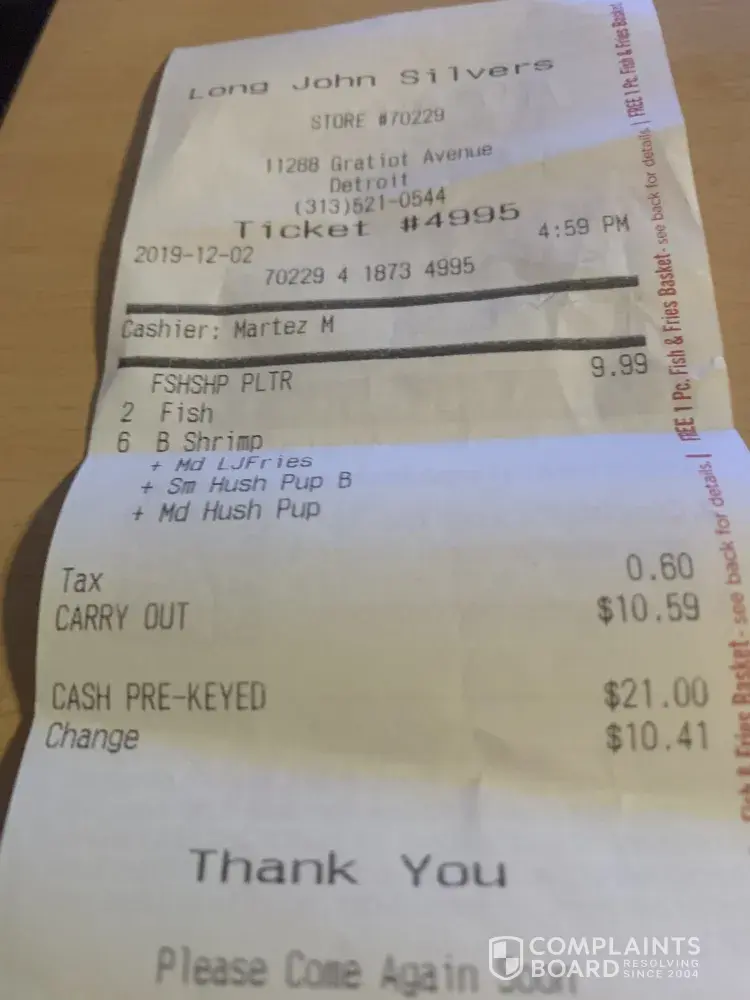 Read full complaintdrive thru service