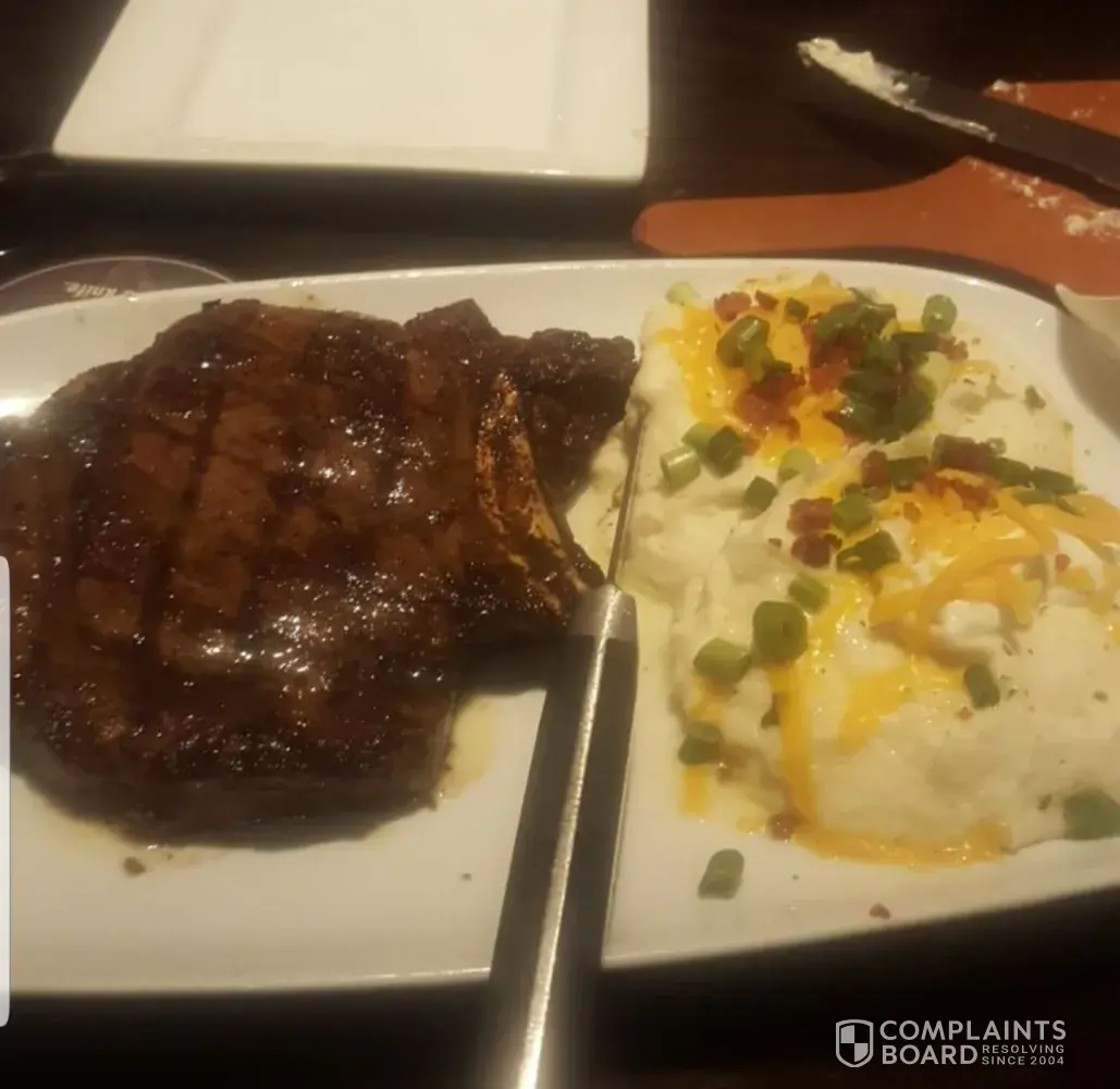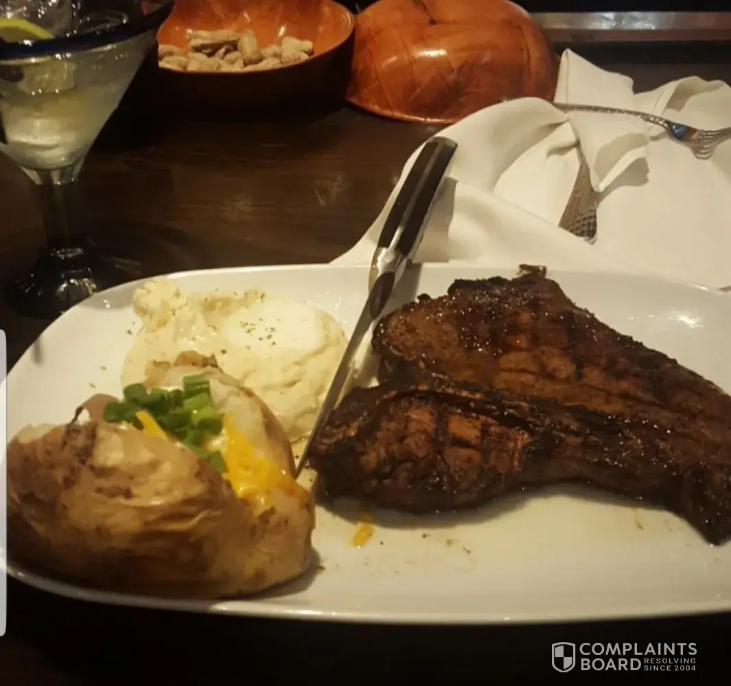 Sat at table 35 (Laura was the waitress). She took our order which was Outlaw Ribeye 18oz (well done) and 6oz sirloin & parmesan chicken with grilled corn. We waited about 15 mins and the food came out. We asked for A1 steak sauce that we never received. I cut into my Ribeye steak and took 2 bites and gagged! It was absolutely horrible! I flipped it over to find it was burnt beyond recognition. Sent it back to the kitchen - waited another 10 mins and it came out again...this time it was still raw! Over 65% of the meat was pink! Sent it back AGAIN, waited and it came back medium well...15% pink. By this time I was extremely upset. Thankful for my husband sharing his food...still with no steak sauce. Laura apologize once and that was not appropriate for the MANY issues we experienced this night. Longhorn is our favorite restaurant but this night was THE WORST EVER! And management NEVER came to the table to apologize nor fins out what was going on with the many steaks going back to the kitchen. My husband never received his rice after we asked 3 times just as we never received the steak sauce or soda refills either. We paid $56 for the absolute worst service & food ever from Longhorn...no discounts offered. Longhorn wasted money and food and customers because now I feel we should patronize Texas Roadhouse. Very disappointed customer!
