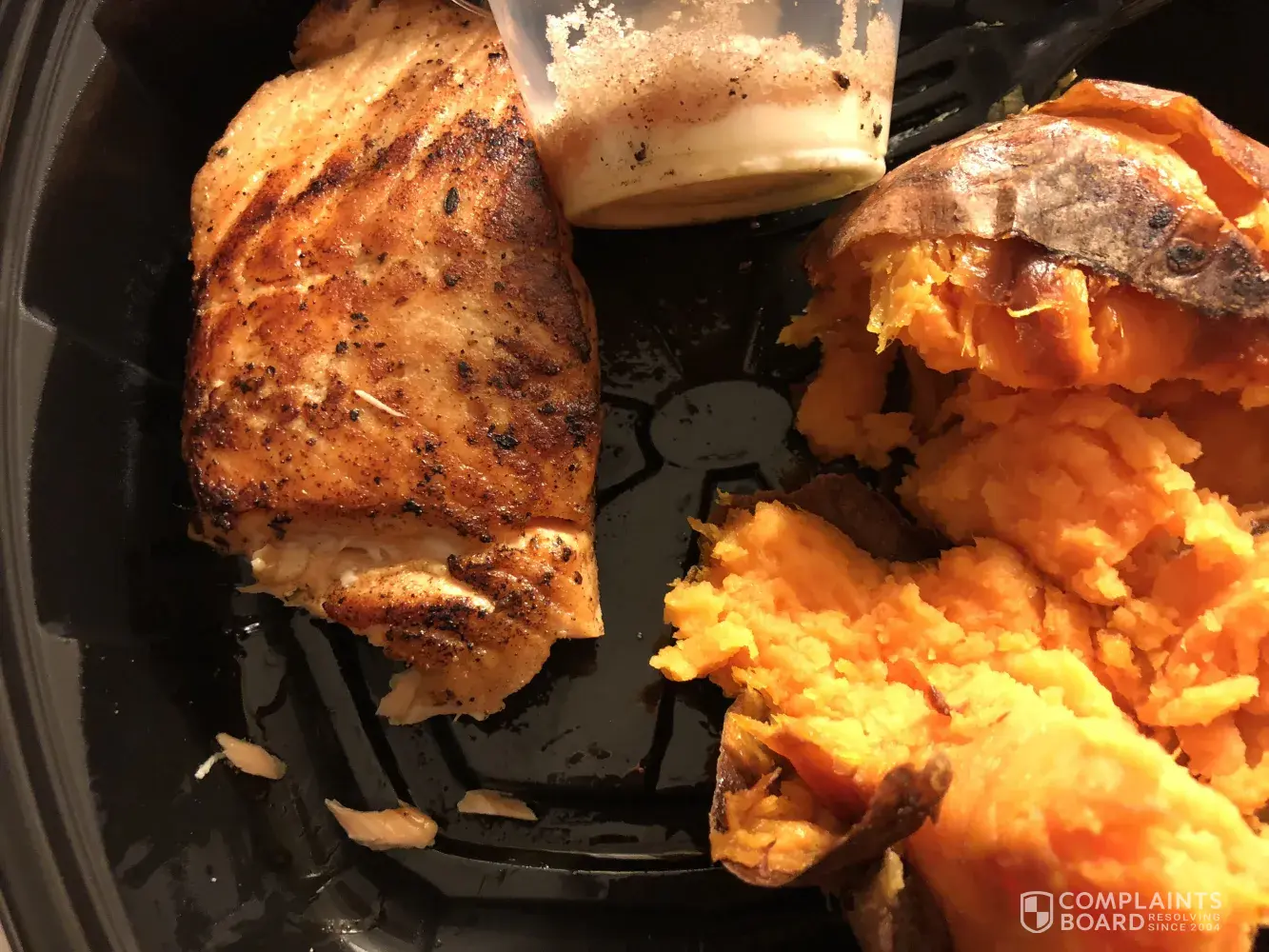 When I received my to go order the salmon was burnt & dry! My sweet potato was dry. I called manager ask if I would return for new order. I WORKED A LONG 10 hour day. Sure I will go I'm still hungry! Manager forgot my order but I didn't have to wait long for second order. Sweet potato still dry/hard. I asked for broccoli. Salmon looked good but when I get back to my hotel (15 minutes later) the salmon is over cooked and crunchy.