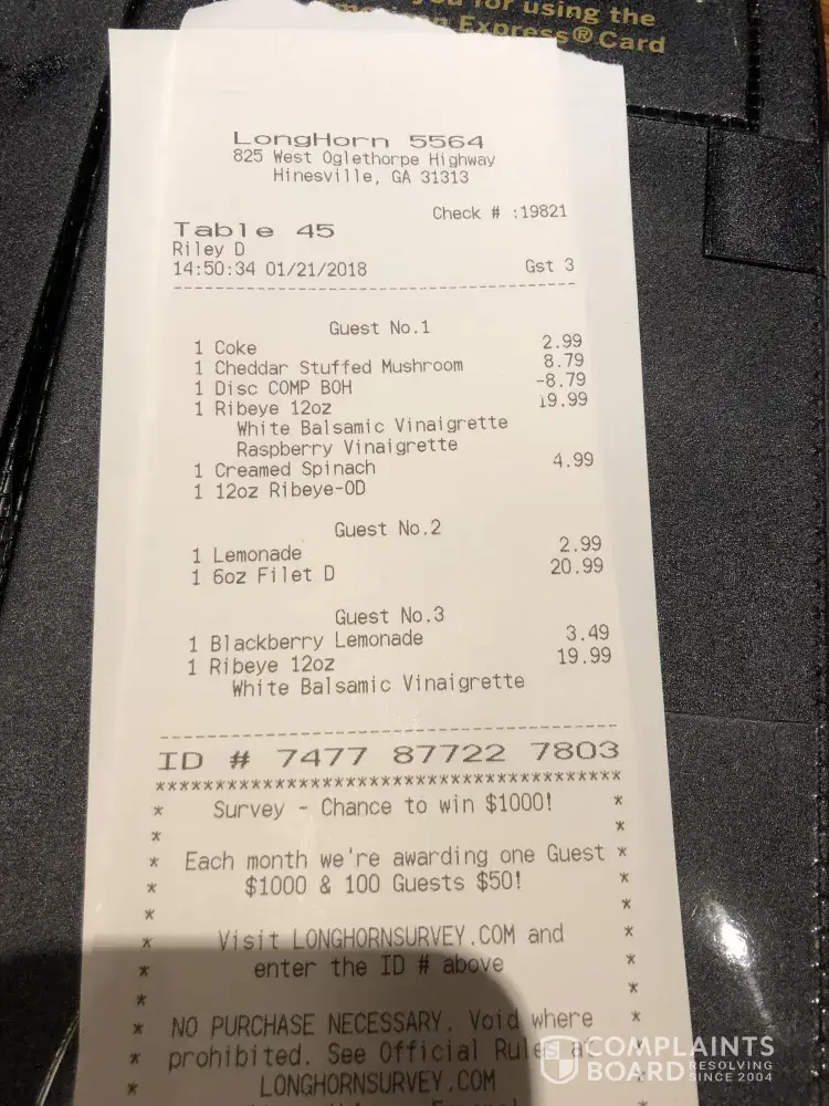 My boyfriend works at longhorn in n. Phoenix area and the servers inform every table they serve that their steaks are boldly seasoned in the 1st place. And raw is a lil exaggerated. There is a huge difference between raw and medium. And yea who expects to get 2 steak dinners for free? Wow