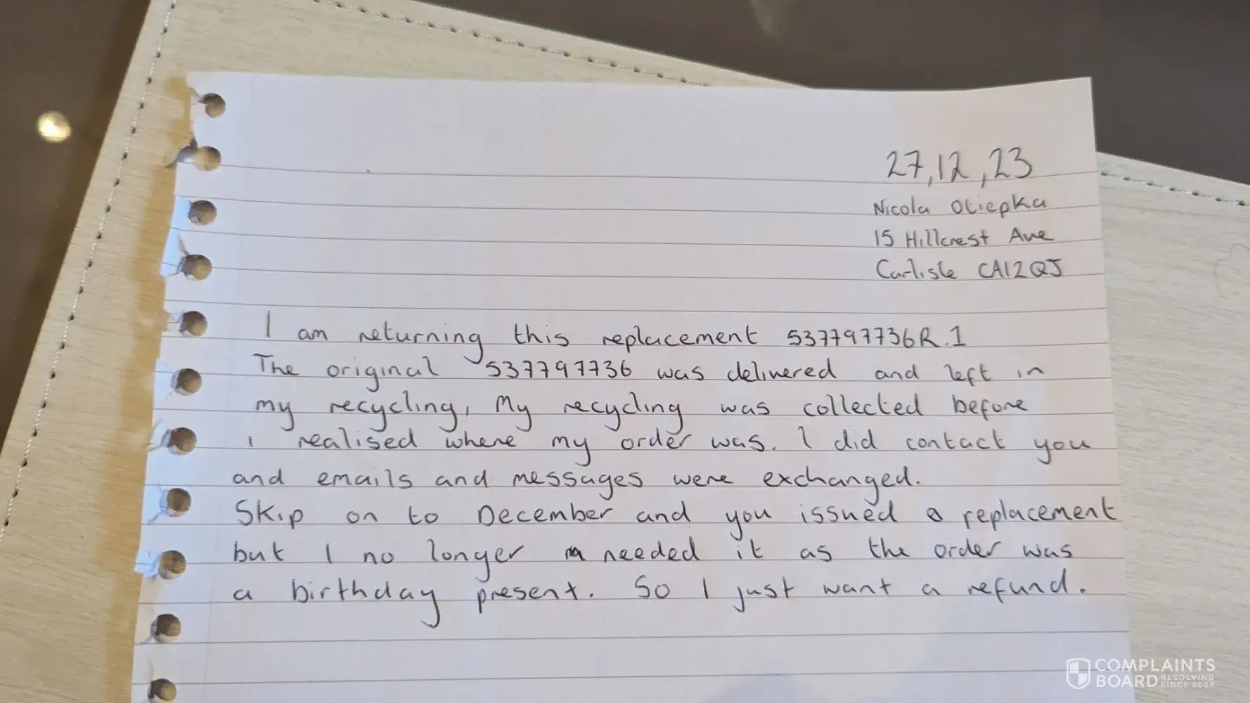 I'm wondering if you can help me please. I ordered some bits for a birthday present back in Nov and royal mail delivered and left the parcel in my recycling by the time I got the email and found out where it had been delivered to my recycling had been collected. I msg look fantastic to try sort this out and have been greated with back and forth message...
