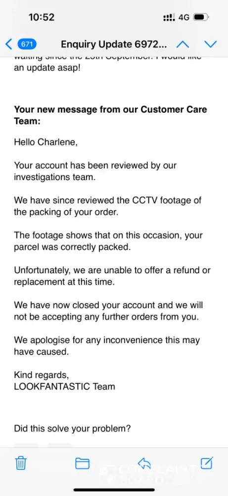 Hey, you should escalate this issue with LookFantastic by contacting them again and insisting on speaking to a manager. You might also consider filing a chargeback with your credit card company if the refund is not processed soon. Additionally, documenting all your communications can be helpful if you decide to take further action.