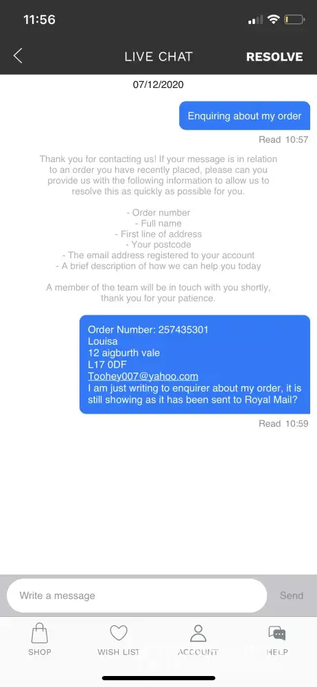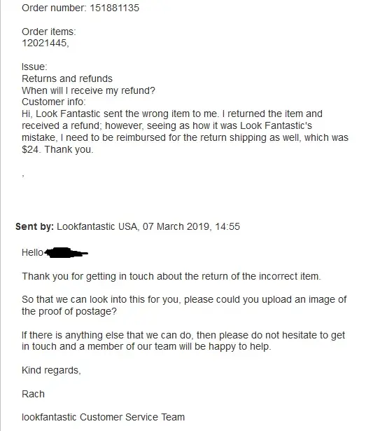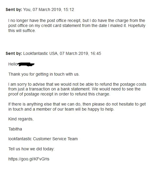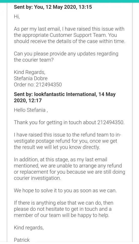 please ask lookfantastic team to either provide me with a refund or solve my problem if they can. I no longer want to deal with these issues and no longer want to keep in contact with this company.
