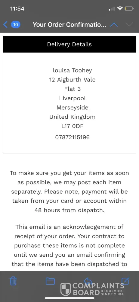 This is a copy of the email I have been attempting to send but it keeps bouncing back. Near impossible to make a formal complain!
